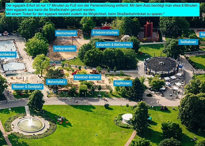 Erfurt Katedrali daireye 1.8 km uzaklıktadır. Erfurt şehir merkezi 2 kilometre uzaklıkta yer alır. Çeşitli yiyecek ve içecekli menüsü olan Caponniere im egapark restoranı 600 metre uzaklıktadır. Tesis, Egapark'nın yakınında yer almaktadır.